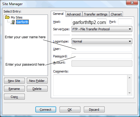 Setting up an FTP client for Garforth FTP